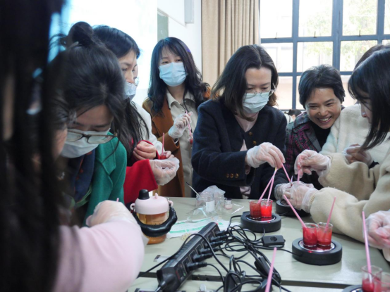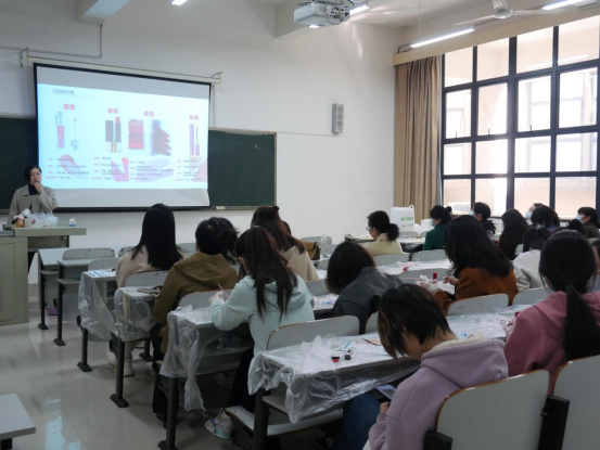 活动伊始,院工会主席张金学向老师们转达了公司党委行政向全院女职工送上的节日问候,并说明了院工会本次活动的决定过程,希望老师们在活动中愉悦心情、健康身心;湖南新启航红文化传播有限公司宋老师先向老师们讲解了口红的发展历史、原材料组成、制作工具使用与步骤。
