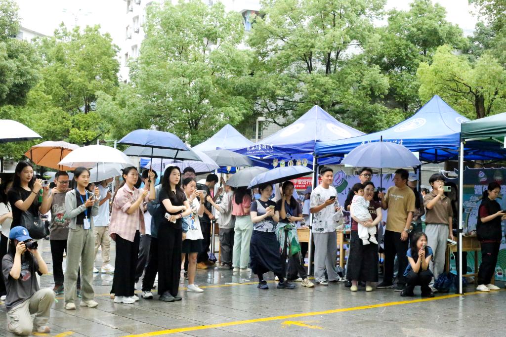 接着,在主持人的热情介绍下,活动正式开始。在趣味DIY区,师生们体验制作了非遗竹编艾草香囊挂件和五彩手绳;知识问答区的活动则是以问题锦囊的形式展开,参与者们在知识与欢笑交织的氛围中,对端午节的来源与文化习俗有了更加深入的了解;另外,趣味游戏区的投壶、钓粽子和套圈等活动,让师生们在收获了欢乐的同时,增进了彼此之间的友谊。