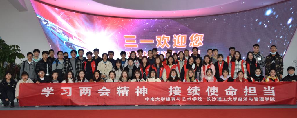 下午3点,两校共60名师生代表乘车来到三一重工股份有限公司长沙产业园参观学习。走进厂房大厅,三一集团的发展历史便映入眼帘,这个“大国重器”从一个焊接材料厂发展到中国最大、全球第五的工程机械制造商,期间饱含创业人的艰辛与坚持,秉承“品质改变世界”的使命,致力打造世界一流的产品,不断推动“中国制造”走向世界一流也是的三一重工走到了今天,在了解到新中国成立70周年联欢活动上,6台三一起重机升起了天安门巨幅国旗,点燃全场激情时,两校学子不由自主的发出自豪的赞叹。