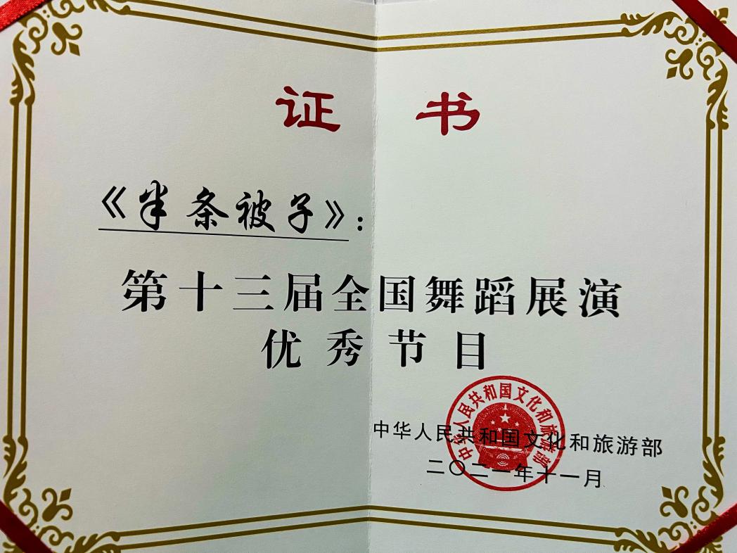 由球王会副教授郭贝贝原创的舞蹈作品《半条被子》,在公司和公司的大力支持、舞蹈专业同学们的全力付出下,《半条被子》在此次全国舞蹈展演活动中荣获“优秀节目”荣誉称号!