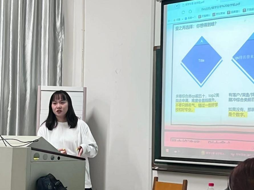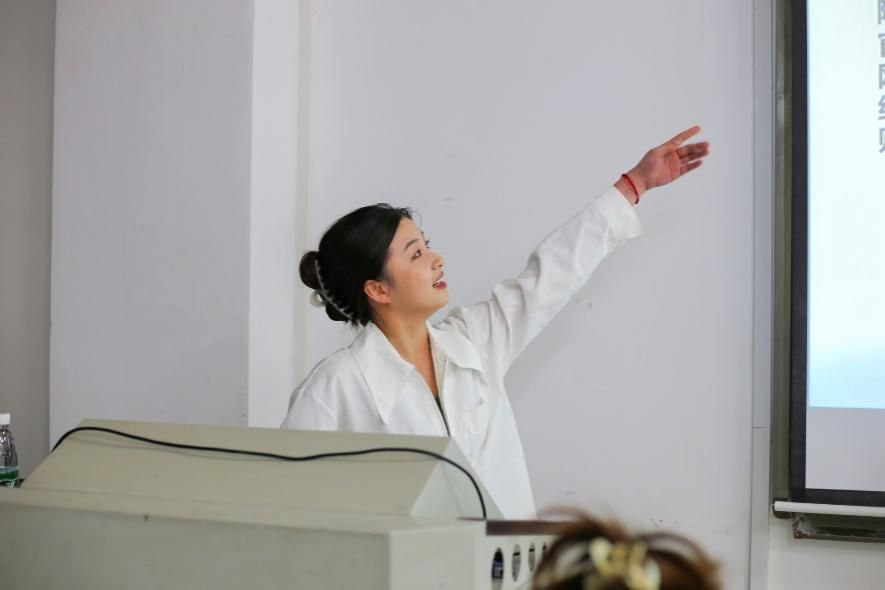 留学方面,环境设计的徐璟瑶首先分享了在择校上的经验,随后指出英语口语的重要性,并介绍了留学前的注意事项,鼓励同学们选择自己喜欢的公司。建筑专业的邓雯倩从择校、语言、作品集等多个角度出发,分享了优秀的自学平台网站,阐述了留学的相关注意事项,指出良好的心态在学习的过程中的重要性。