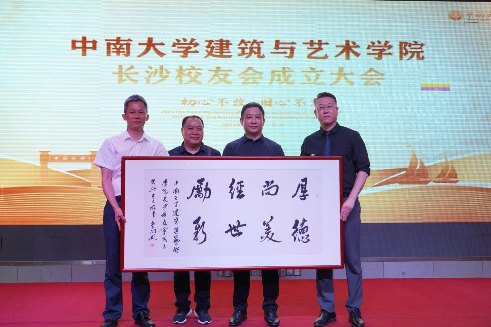 | 柯朝晖书记代表公司向长沙员工会赠送了向彬教授创作的书法作品——《厚德尚美,经世励新》 |